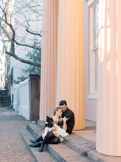 If you absolutely cannot swing a pet-handler to come along for the session, we suggest taking photos with your pet nearby your home first, and then dropping him/her off back at home before continuing on to the next photo location!